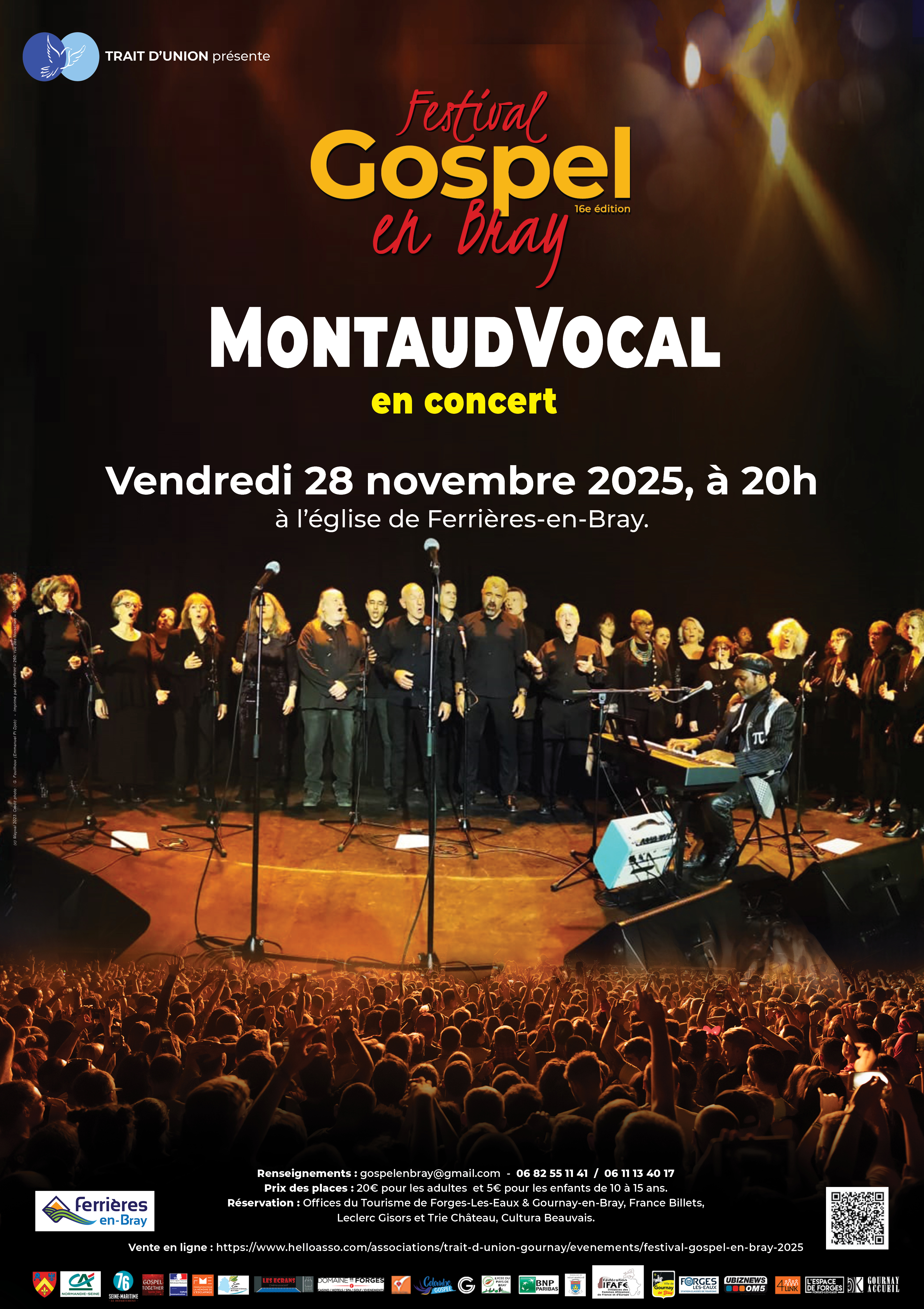 MONTAUDVOCAL Créé il y a une dizaine d’années par Emmanuel Pi Djob, le chœur regroupe des chanteurs mus par l’amour du chant et du partage humain. Différents niveaux de chant sont unifiés et sublimés par la rigueur de la direction musicale et des arrangements Billetterie : https://www.helloasso.com/associations/trait-d-union-gournay/evenements/festival-gospel-en-bray-2025
