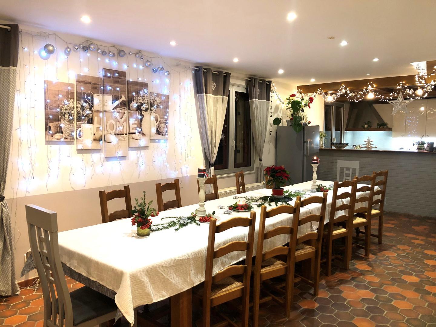 In the heart of the Oise Normande, come and recharge your batteries at the "Villa Des Eaux Ouïes", a spacious 210 m² farmhouse tastefully renovated and able to accommodate 14 people.
