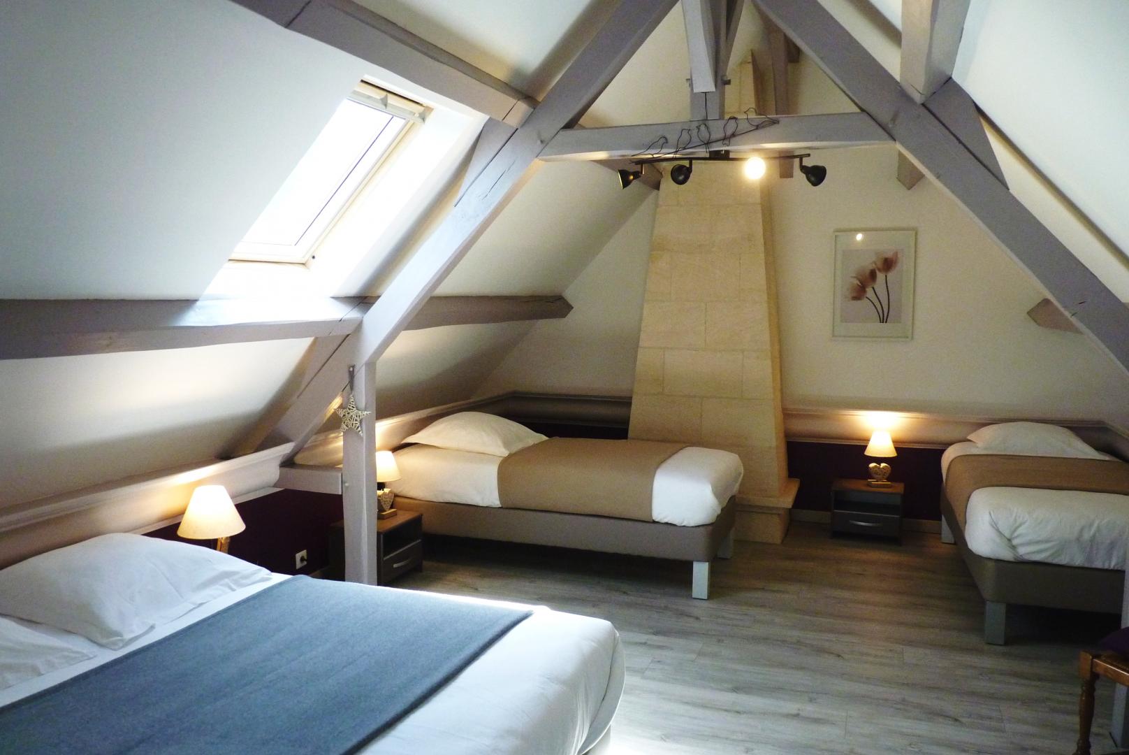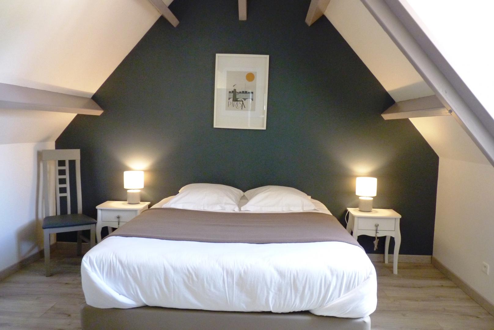 Gîte adjoining on 2 levels. On the 1st floor : 2 bedrooms (1 double bed - 2 single beds) - shower on the bathroom - wc.