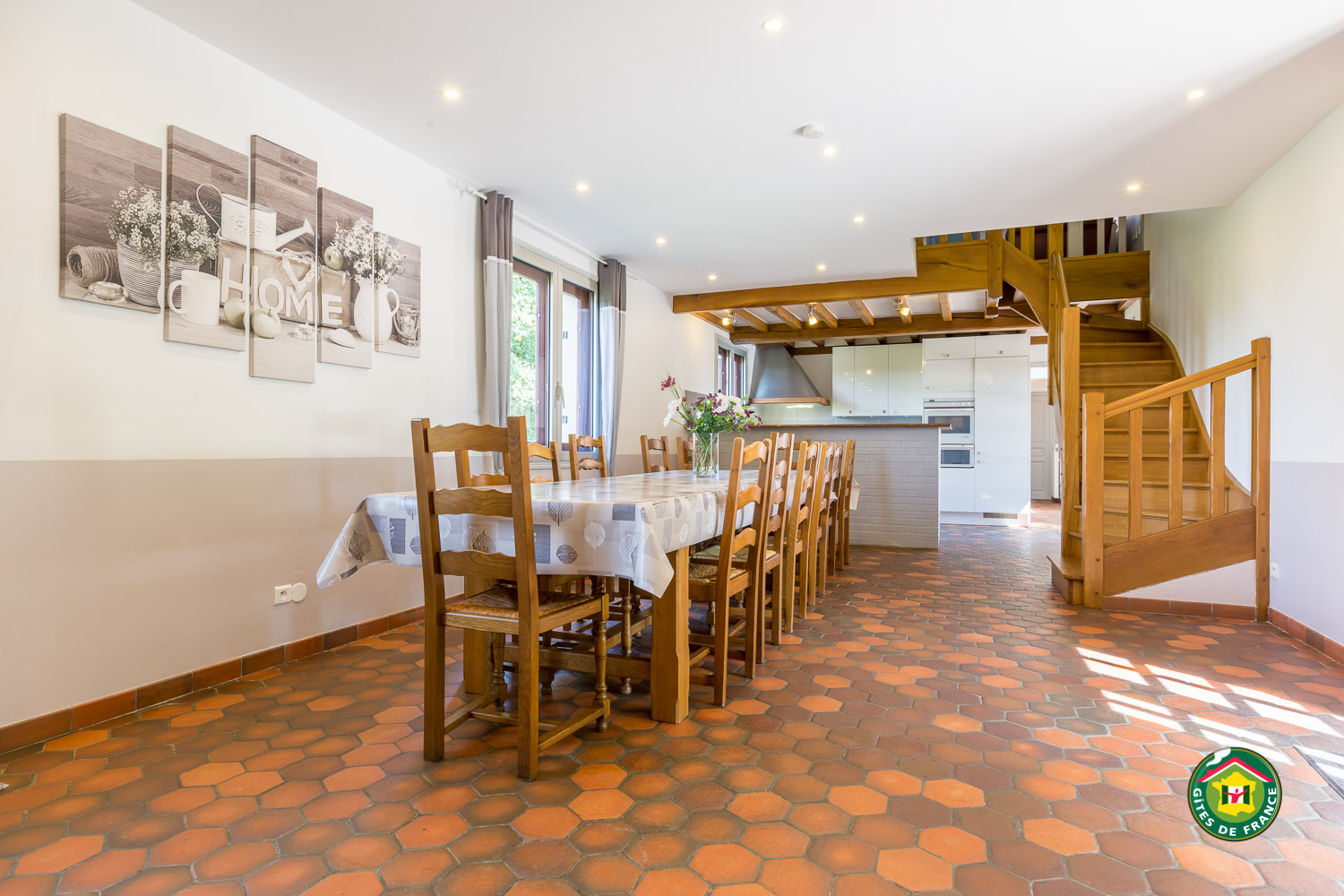 This gîte is a family home, which Marc and Valérie wanted to open to you. You have an independent entrance, which overlooks a pretty park where the ping-pong table and the plancha await you.