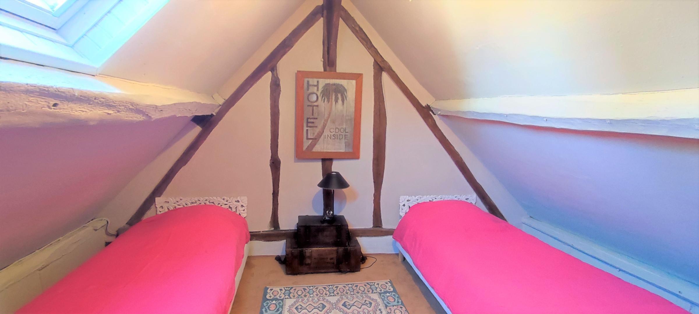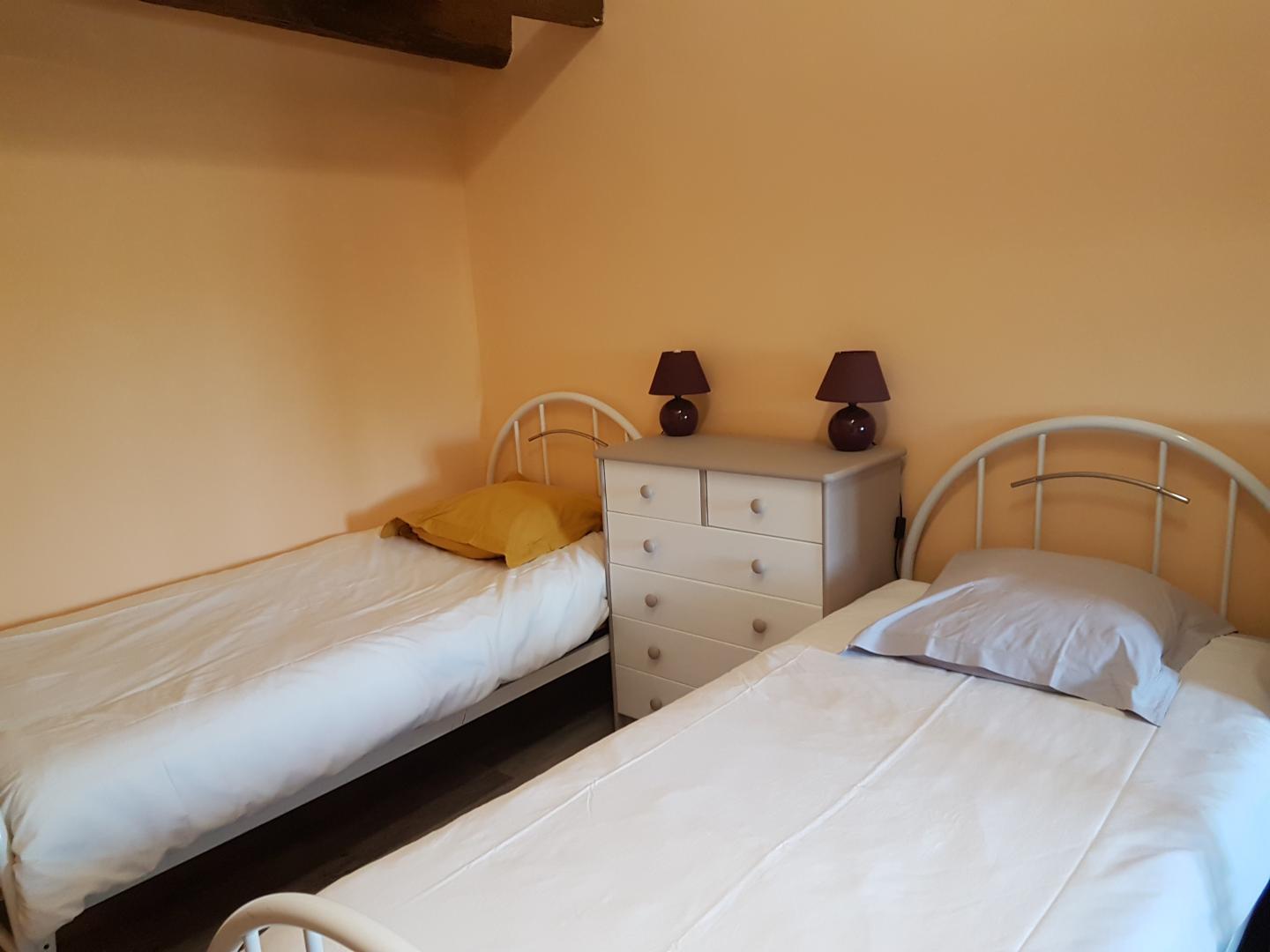 Gîte indépendant de caractère, sur 2 niveaux. Séjour avec canapé convertible. A l'étage : 2 chambres (1 lit 2 personnes - 1 lit de 2 personnes et 2 lits 1 personne).